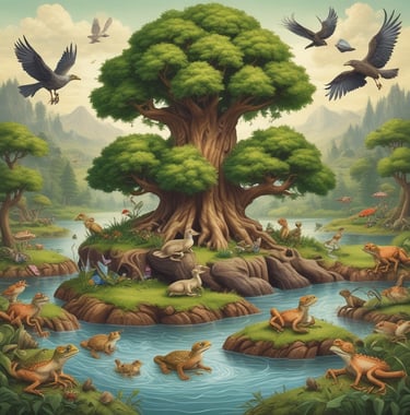 In "Frog & Toad," the screenplay by Esaie Prince begins with an imaginative depiction of life in a lush rainforest, characterized by a vivid sunset and intricate ecosystems. The narrative follows the lifecycle of frogs within an emergent tree, showcasing their unique habitat filled with bromeliads that nurture eggs, and the social and industrious behaviors of the frogs.